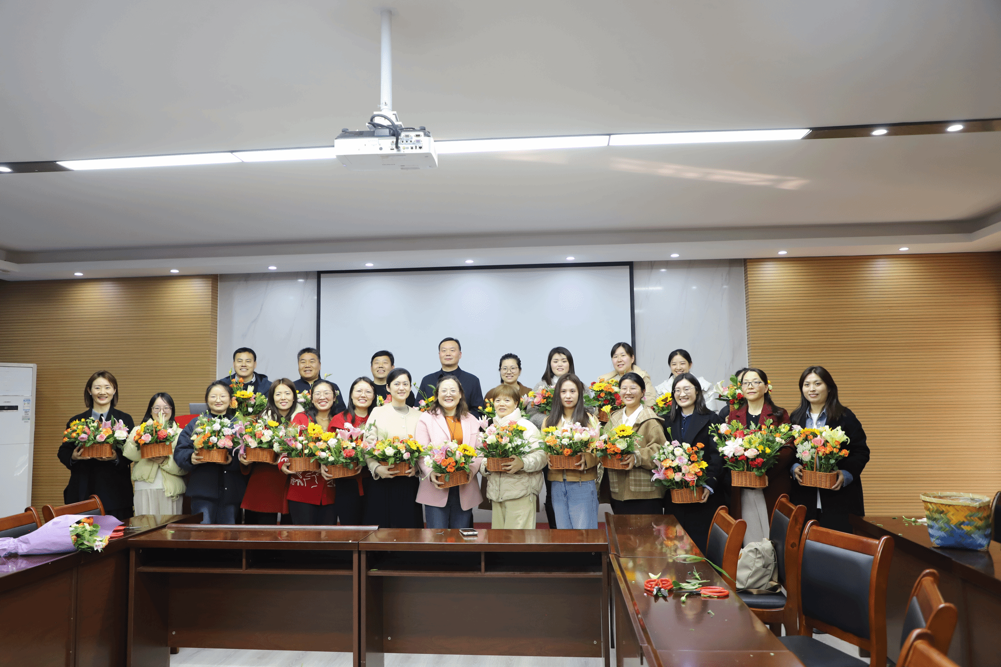 于3月10日在3511会议室举办“指尖绽放芳华,思想凝聚力量”主题插花活动。学院领导班子及全体女教职工齐聚一堂,以花为媒,共赴一场春日与艺术的浪漫之约。