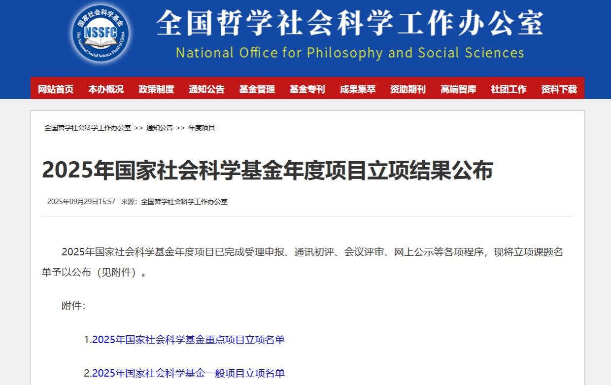 9月29日,全国哲学社会科学工作办公室公布了2025年国家社会科学基金年度项目立项结果,樱桃直播