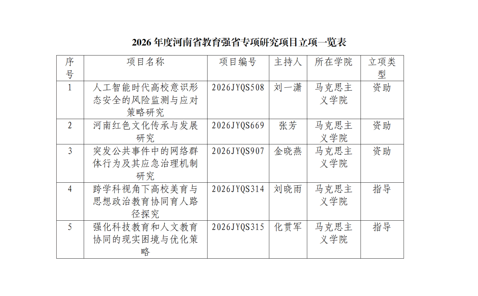 共计5项河南省教育强省专项研究项目获批支持立项。